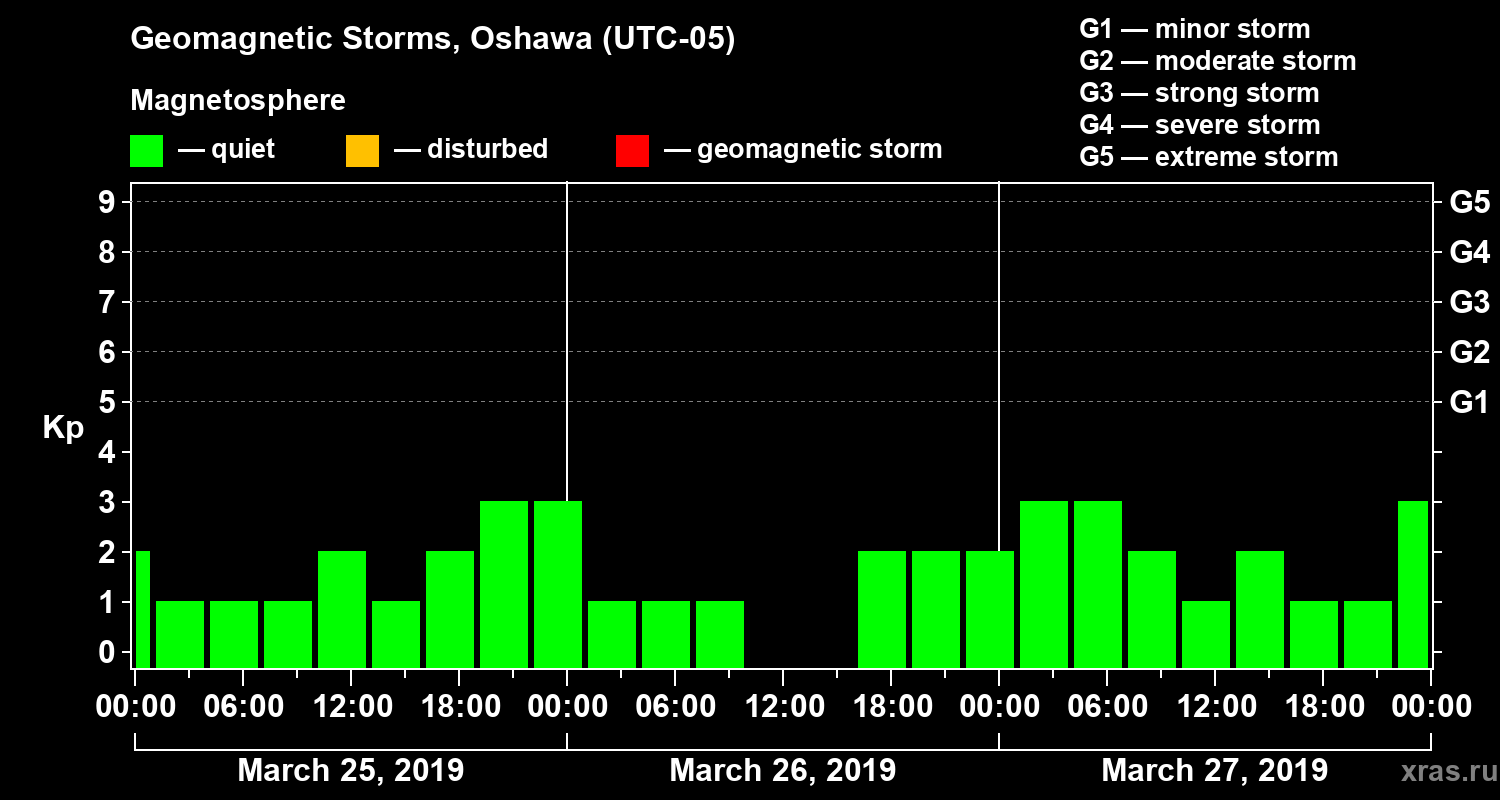 Geomagnetic storms in Oshawa — Mar 27, 2019