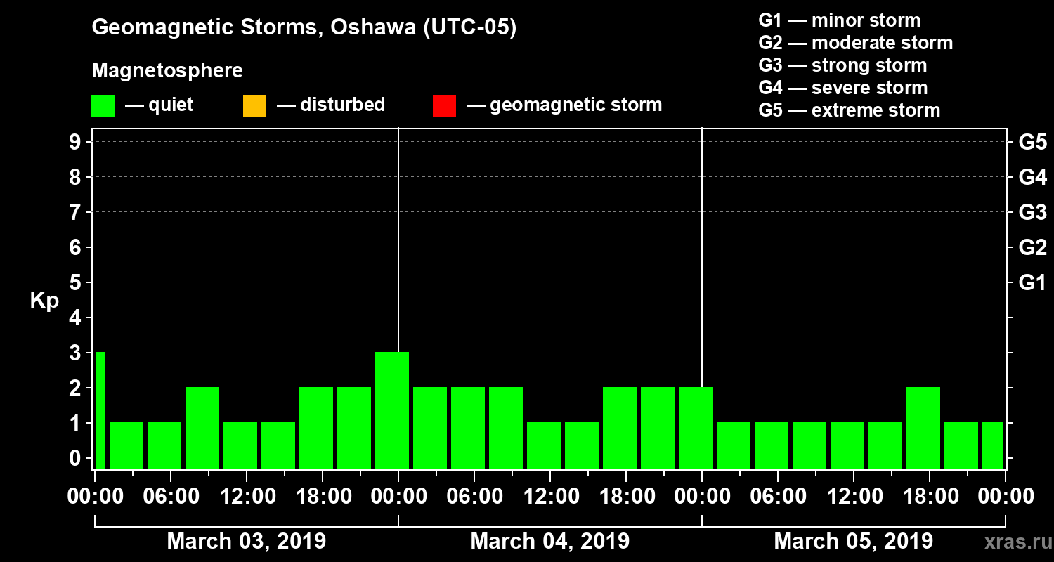 Geomagnetic storms in Oshawa on Mar 05, 2019