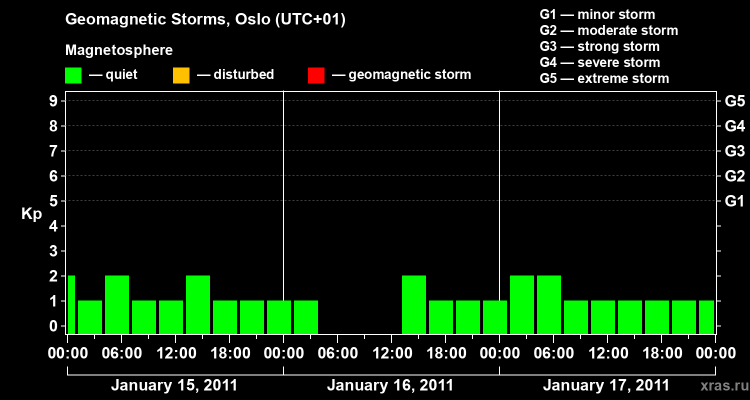 Geomagnetic storms in Oslo on Jan 17, 2011
