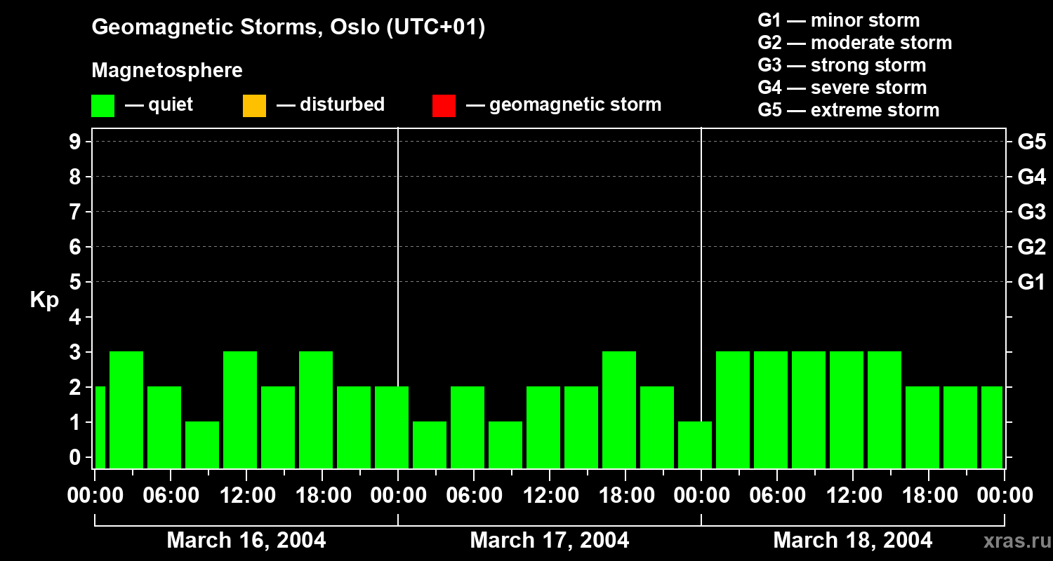 Geomagnetic storms in Oslo — Mar 18, 2004