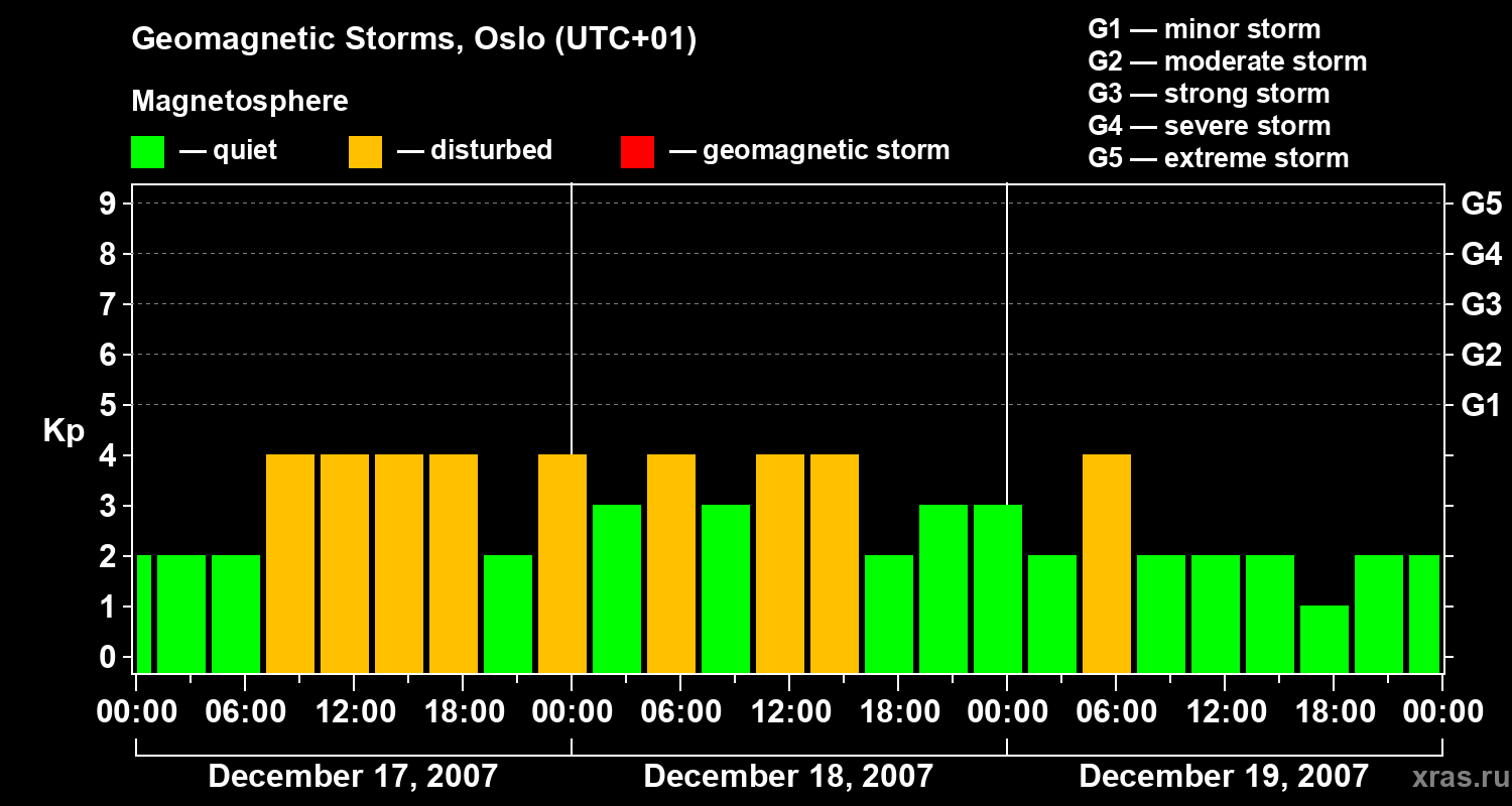 Geomagnetic storms in Oslo on Dec 19, 2007