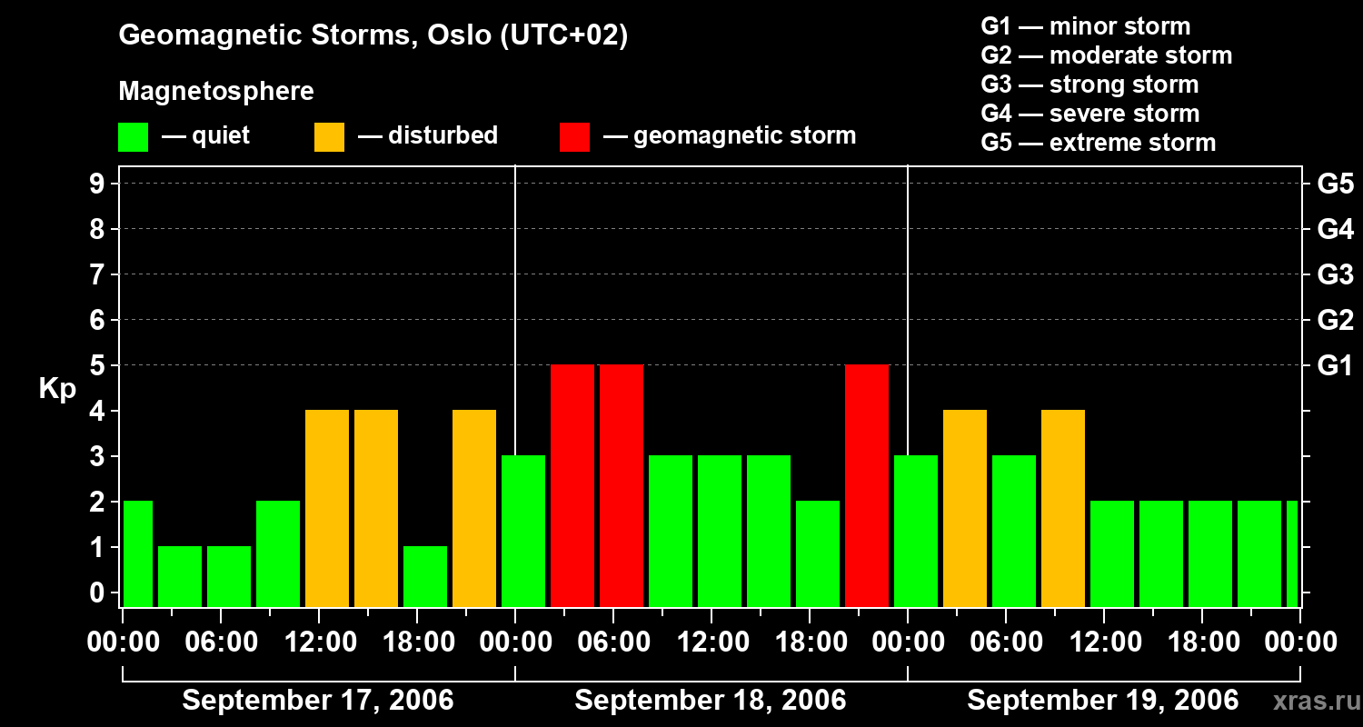 Geomagnetic storms in Oslo on Sep 19, 2006