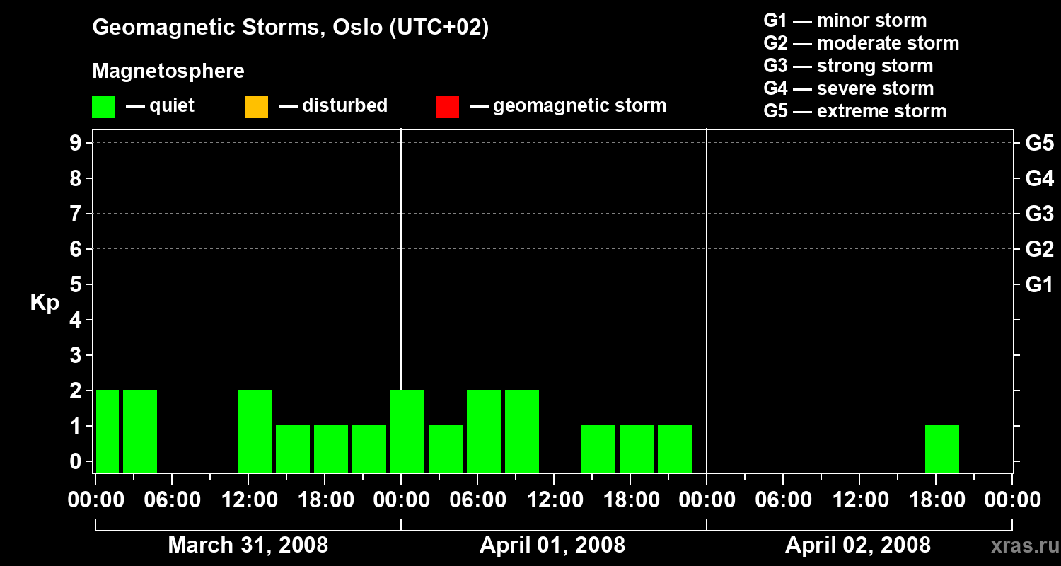 Geomagnetic storms in Oslo on Apr 02, 2008