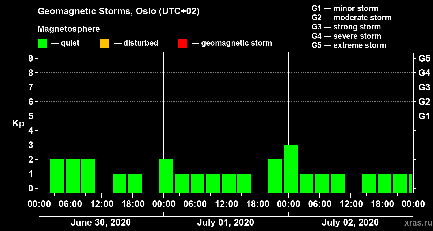 Geomagnetic storms in Oslo on Jul 02, 2020