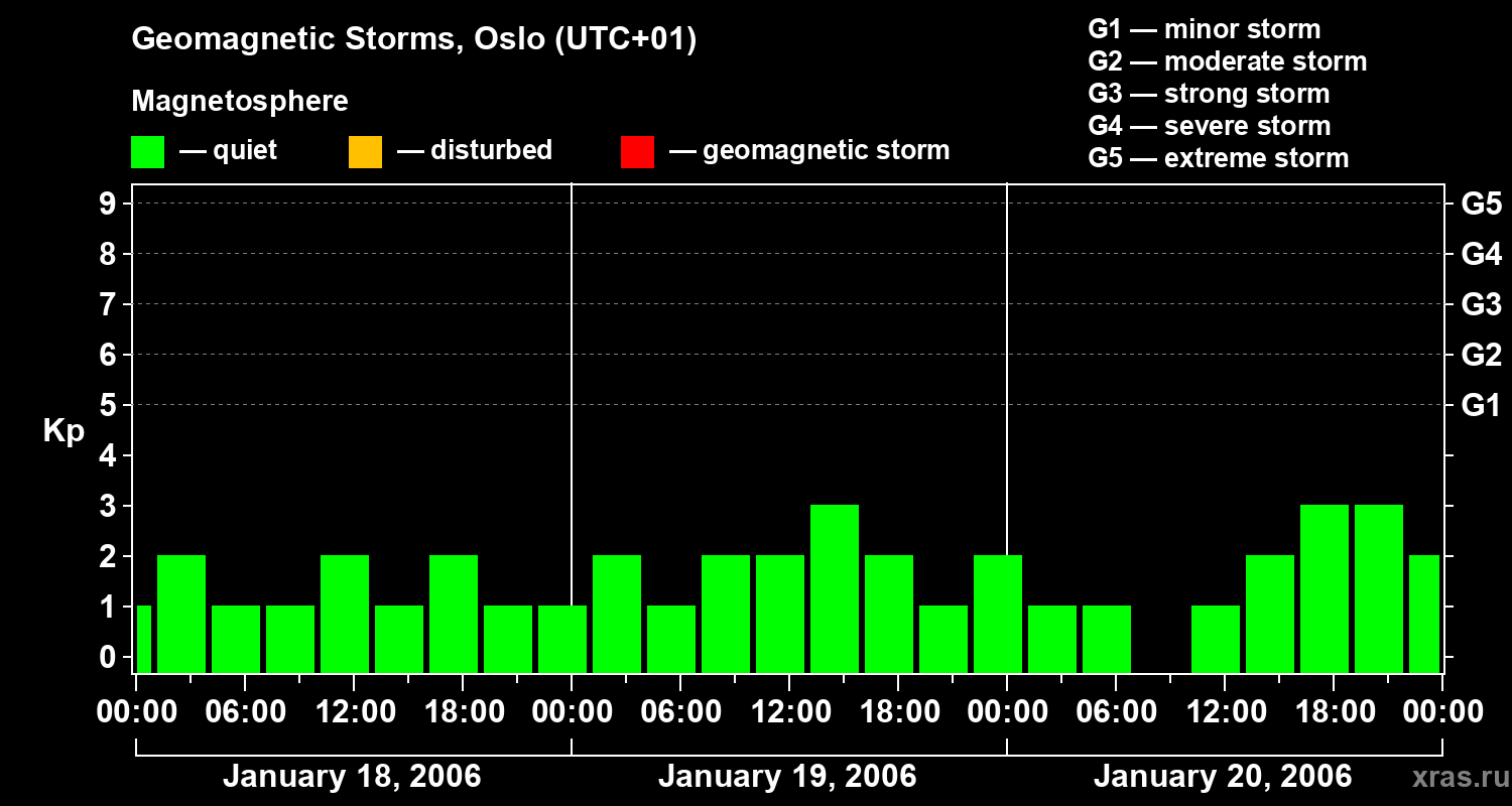 Geomagnetic storms in Oslo on Jan 20, 2006