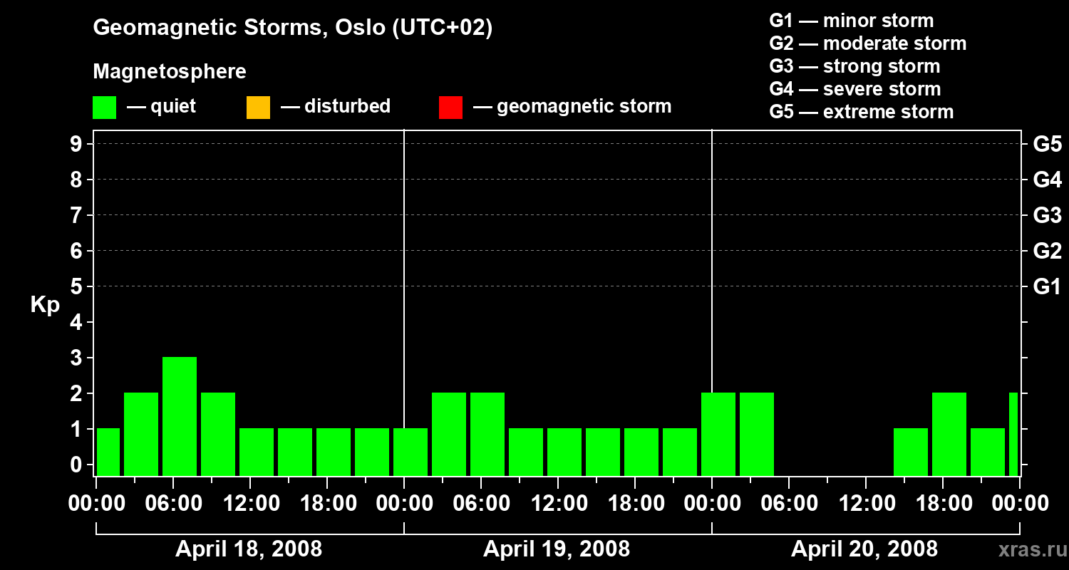 Geomagnetic storms in Oslo on Apr 20, 2008