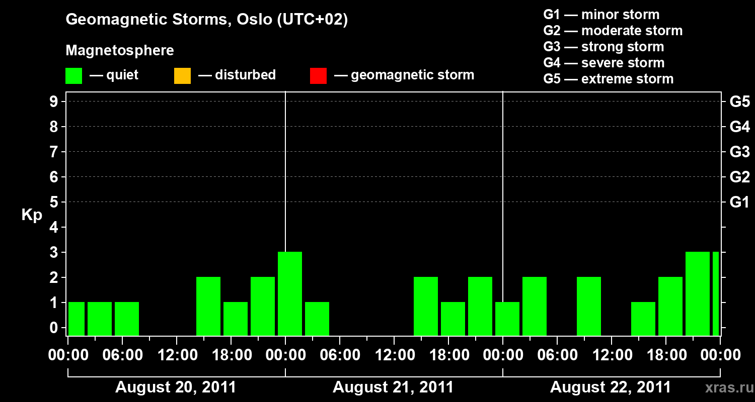 Geomagnetic storms in Oslo — Aug 22, 2011