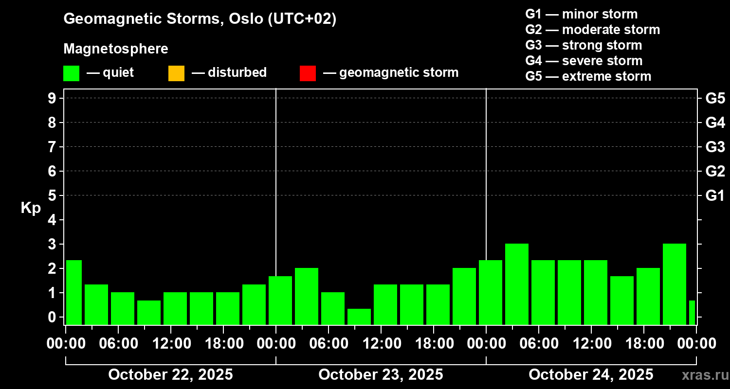 Geomagnetic storms in Oslo — Oct 24, 2025