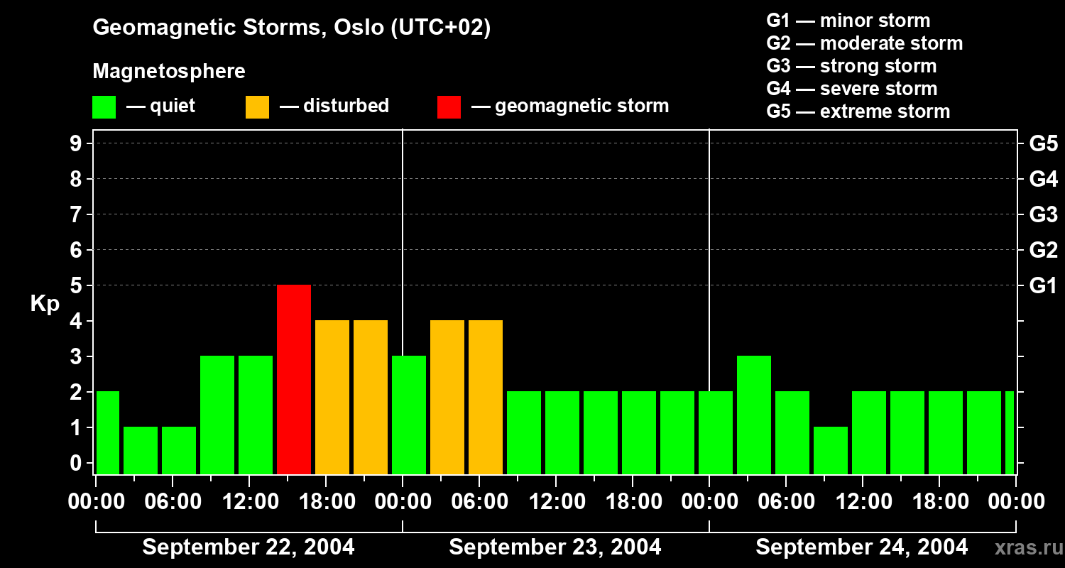 Geomagnetic storms in Oslo on Sep 24, 2004