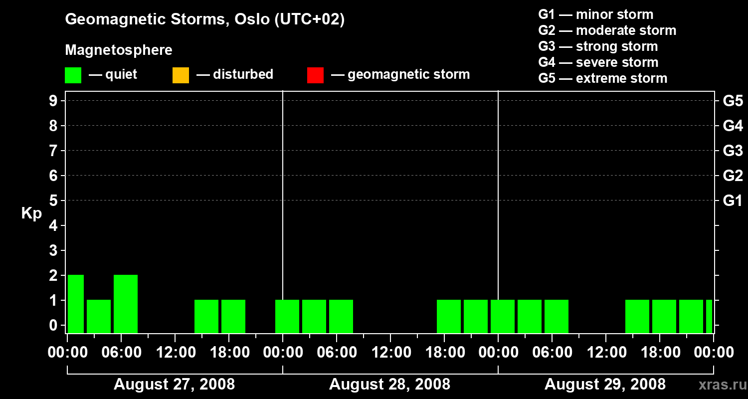 Geomagnetic storms in Oslo — Aug 29, 2008