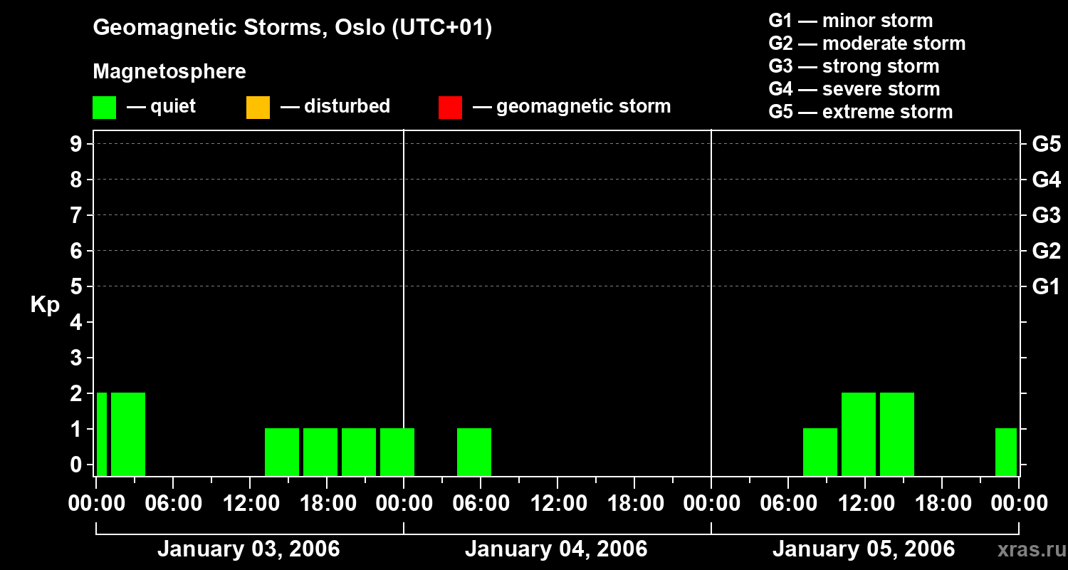 Geomagnetic storms in Oslo on Jan 05, 2006