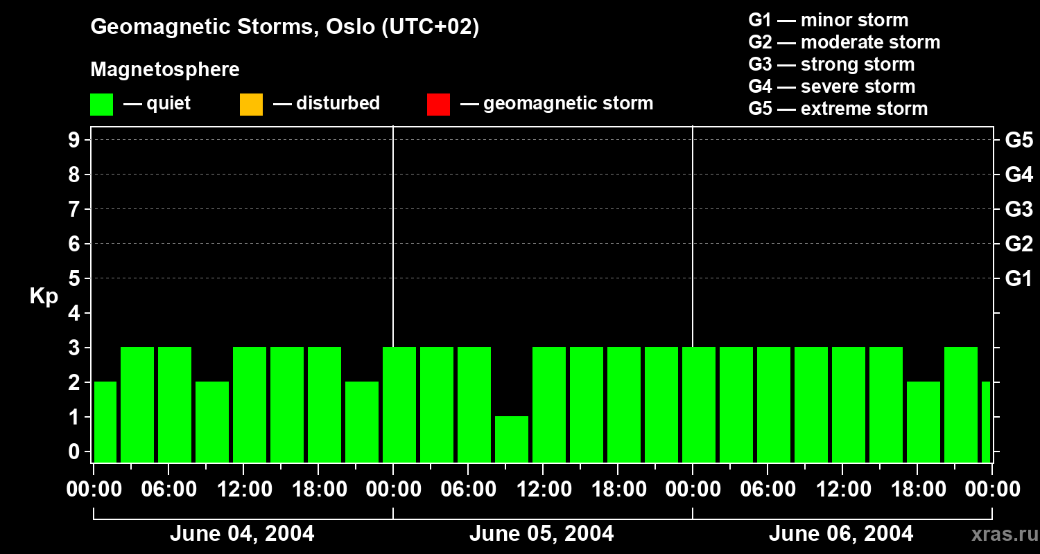 Geomagnetic storms in Oslo on Jun 06, 2004