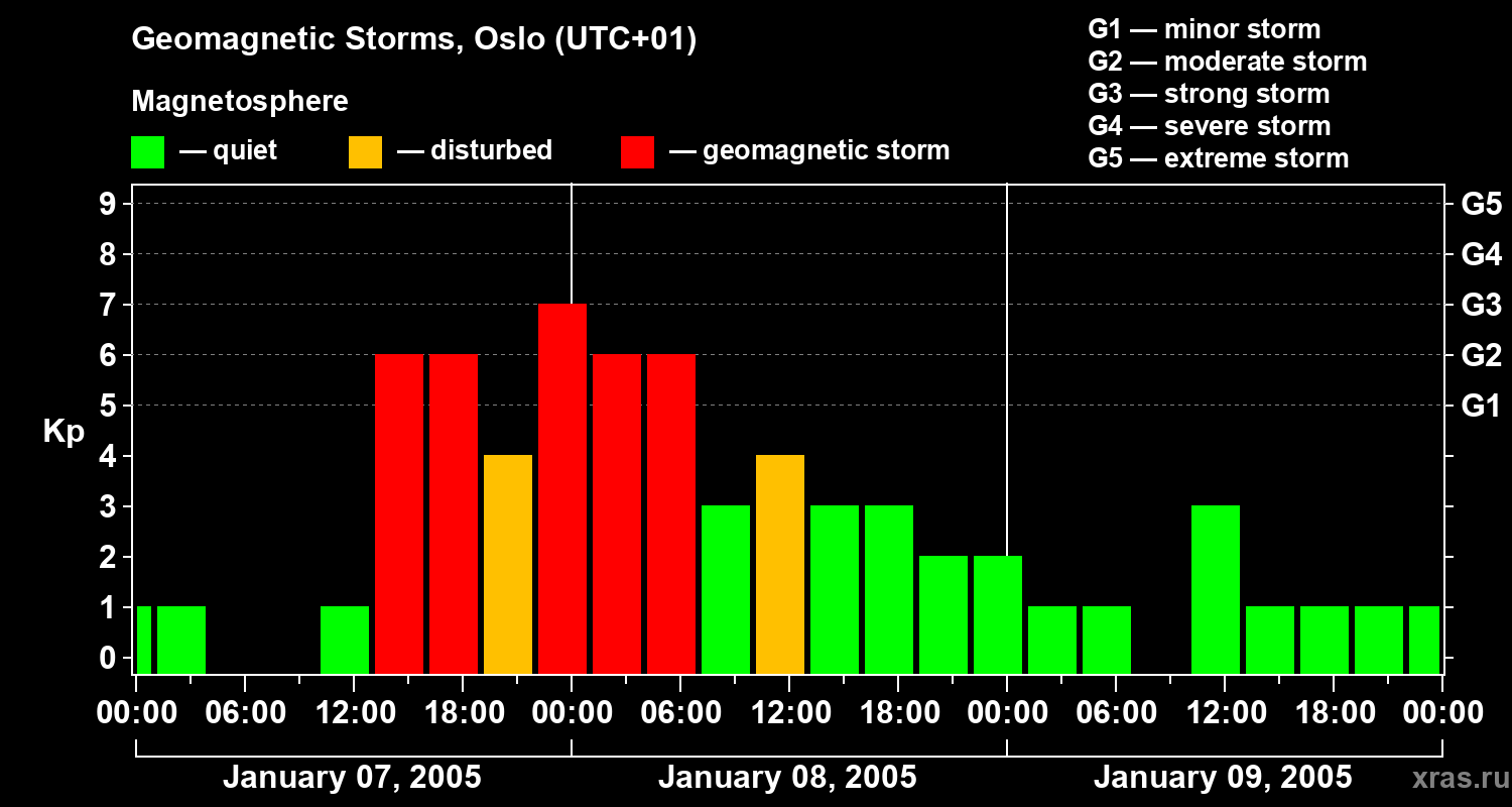 Geomagnetic storms in Oslo on Jan 09, 2005