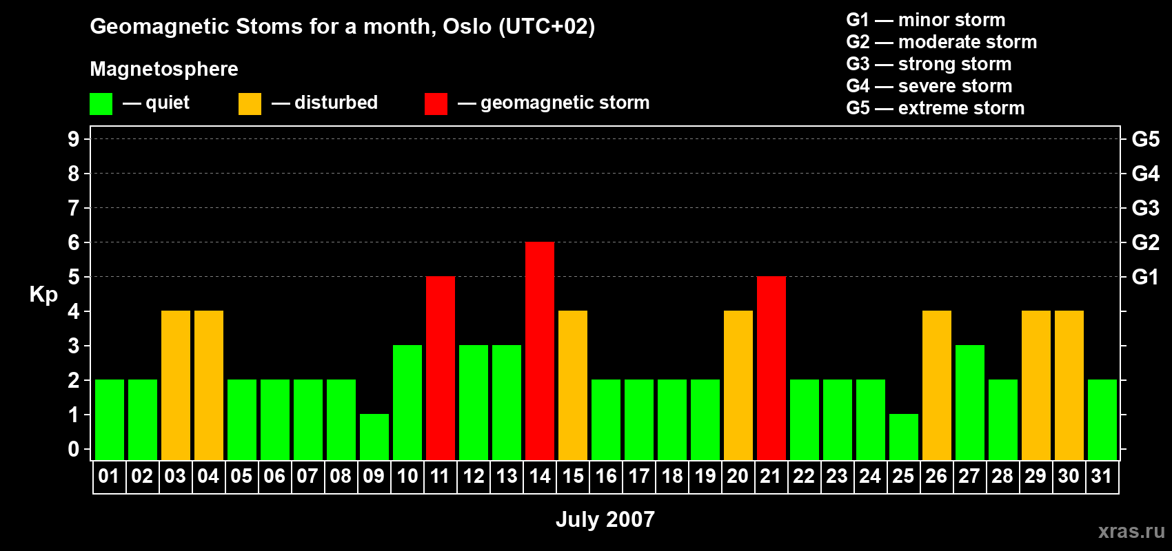 14 July 2007 — Magnetic storm of level G2