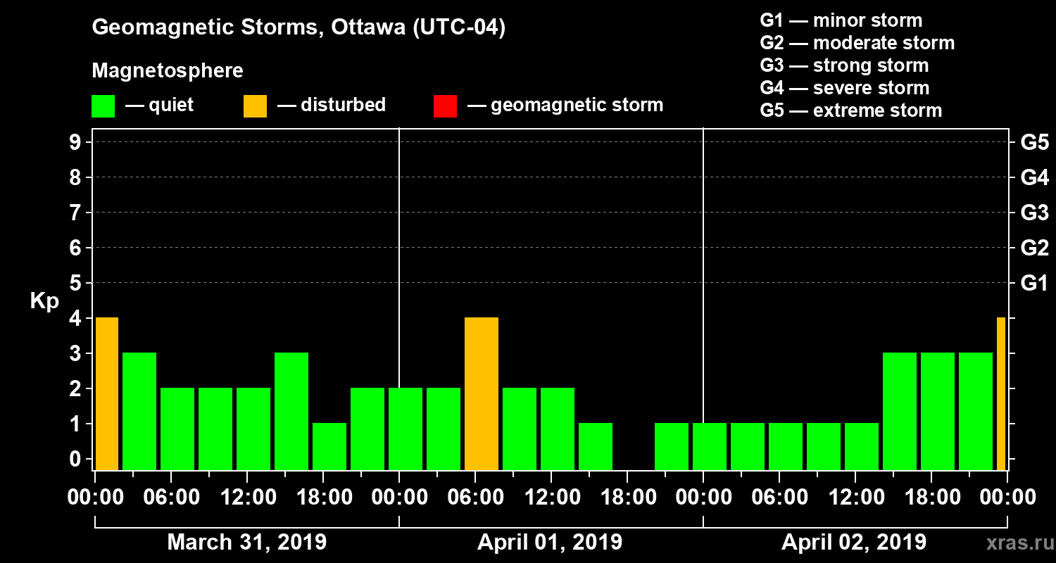 Geomagnetic storms in Ottawa on Apr 02, 2019