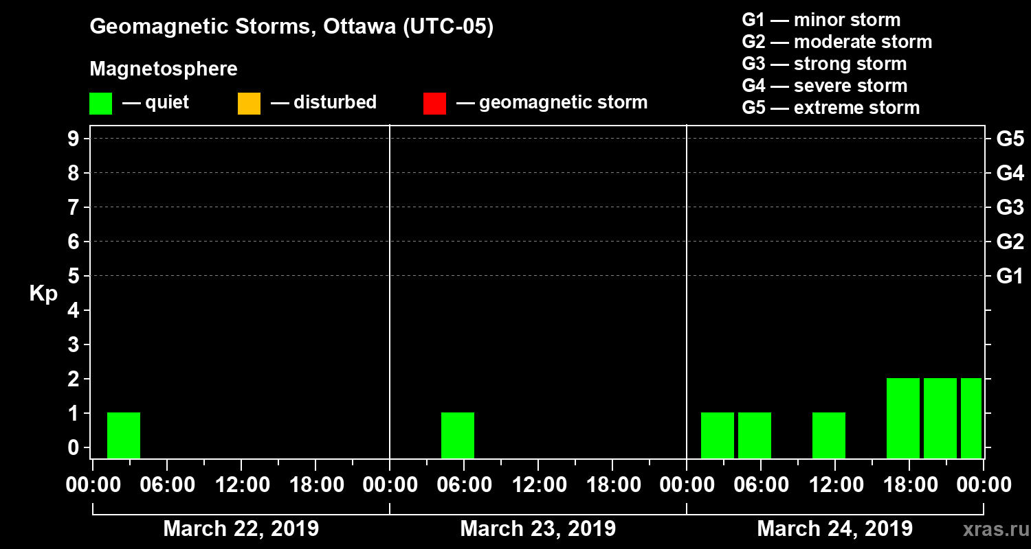 Geomagnetic storms in Ottawa on Mar 24, 2019