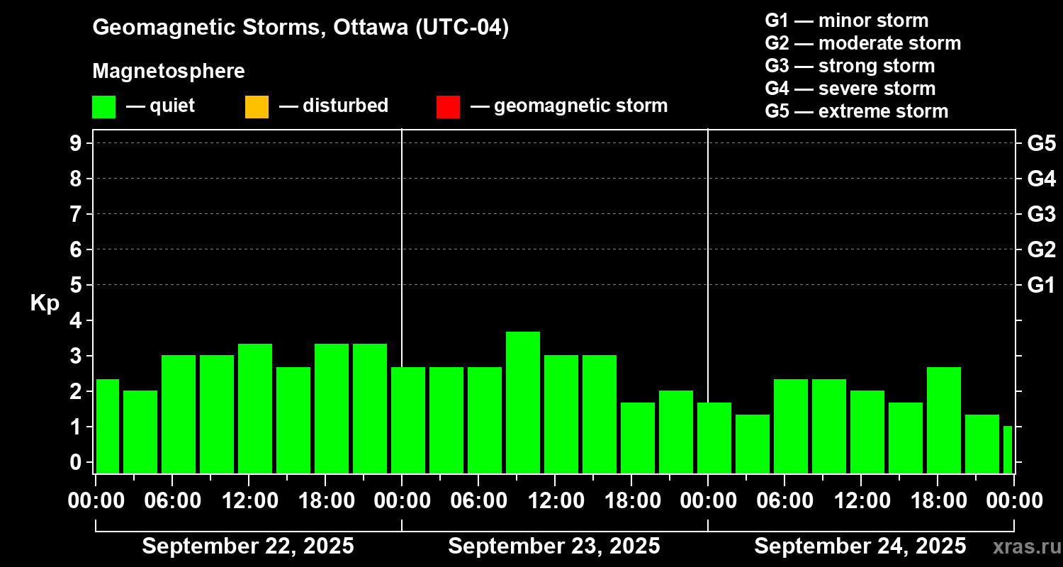 Geomagnetic storms in Ottawa on Sep 24, 2025