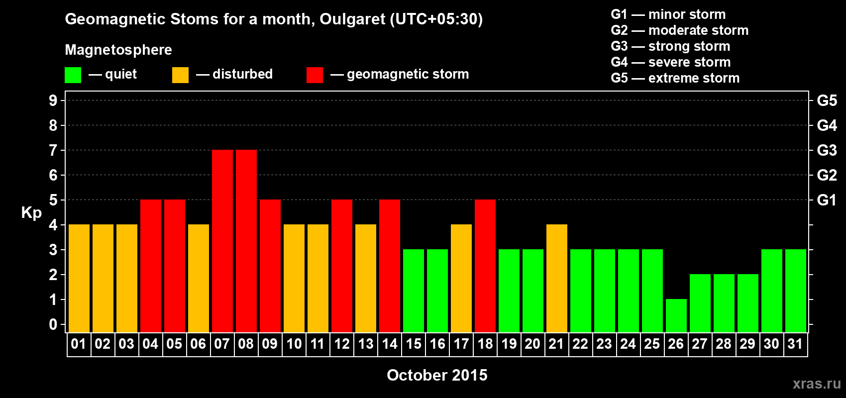 Geomagnetic storms in Oulgaret — Oct 31, 2015