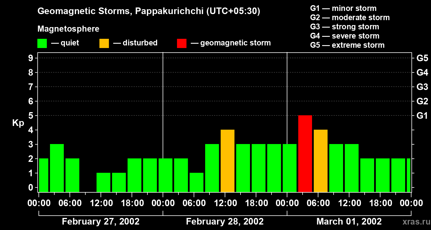 Geomagnetic storms in Pappakurichchi on Mar 01, 2002