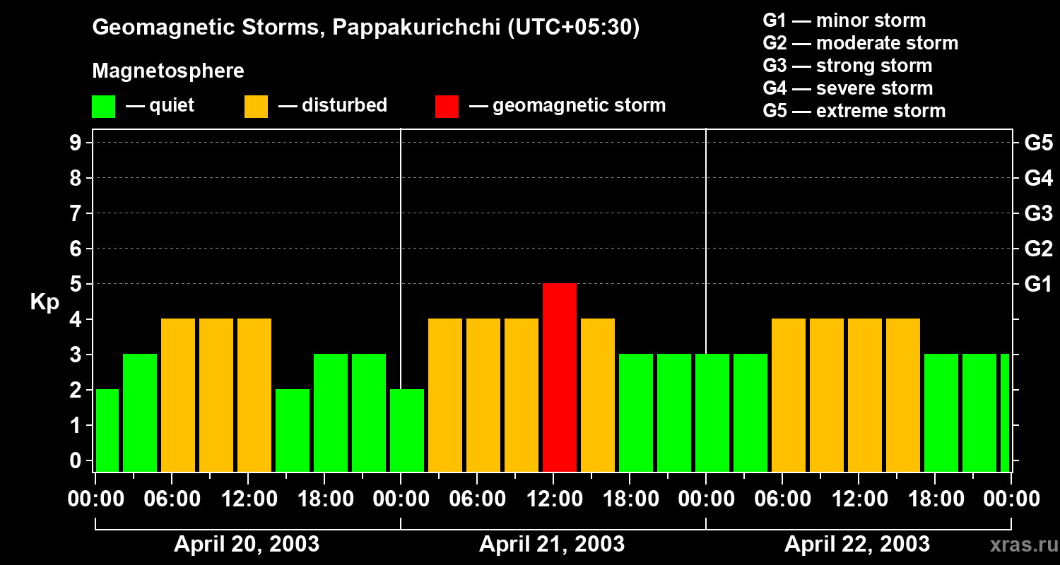 Geomagnetic storms in Pappakurichchi — Apr 22, 2003