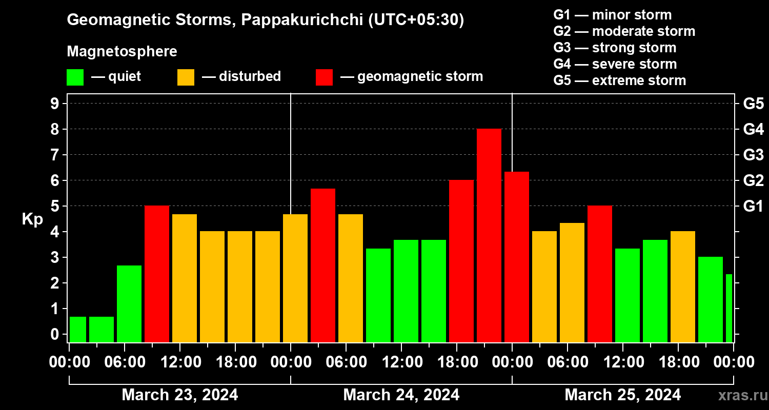 Geomagnetic storms in Pappakurichchi — Mar 25, 2024