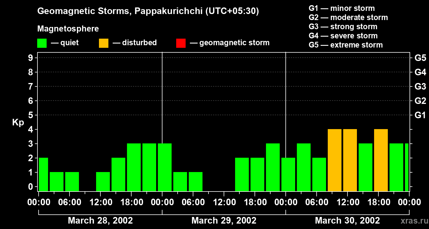 Geomagnetic storms in Pappakurichchi on Mar 30, 2002