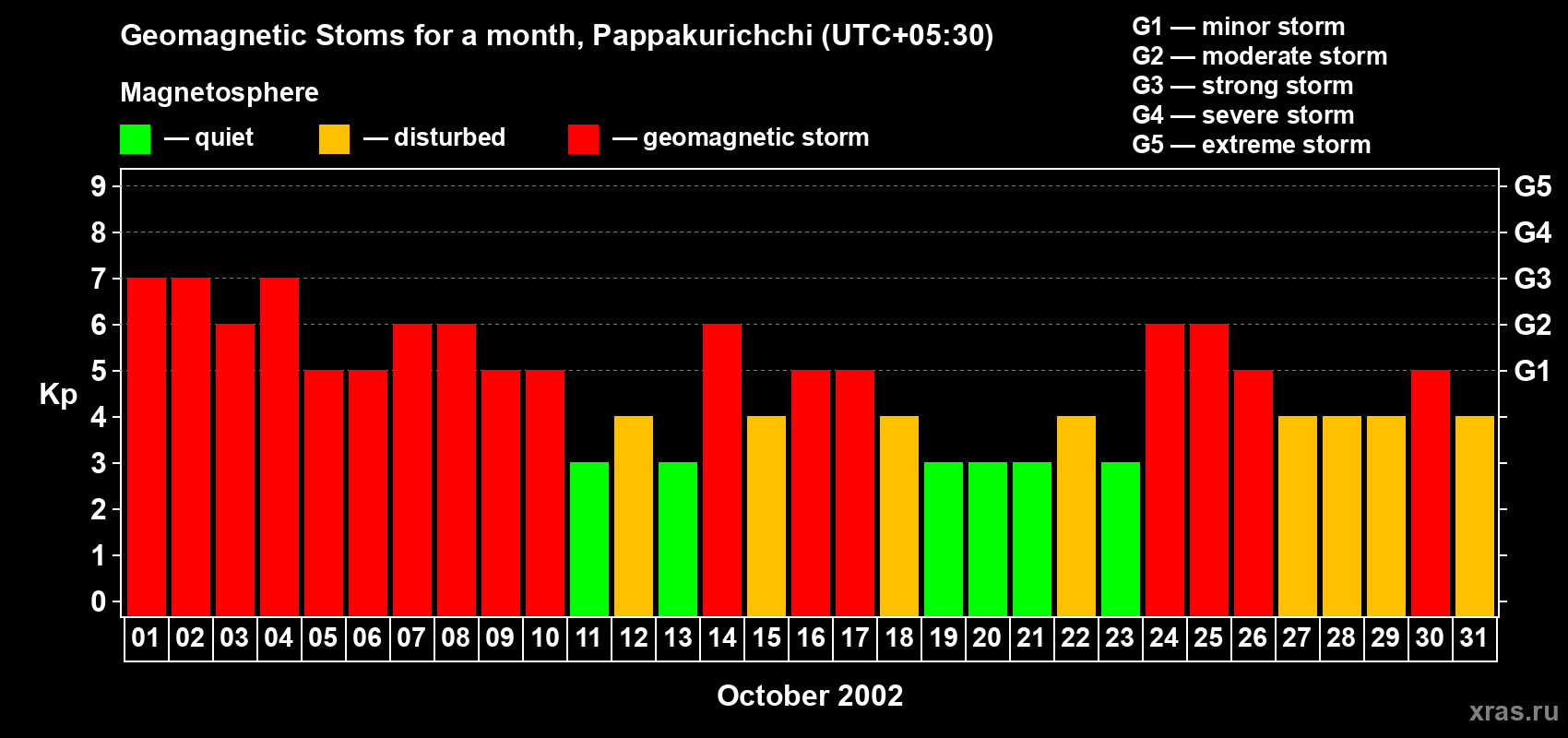 Geomagnetic storms in Pappakurichchi on Oct 31, 2002