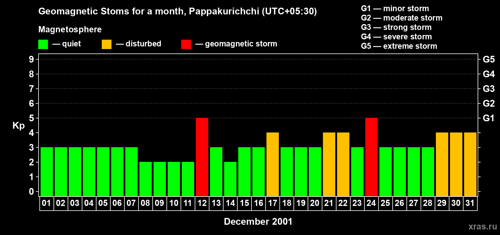 Geomagnetic storms in Pappakurichchi on Dec 31, 2001