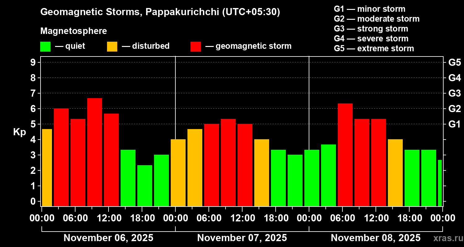 Geomagnetic storms in Pappakurichchi — Nov 08, 2025