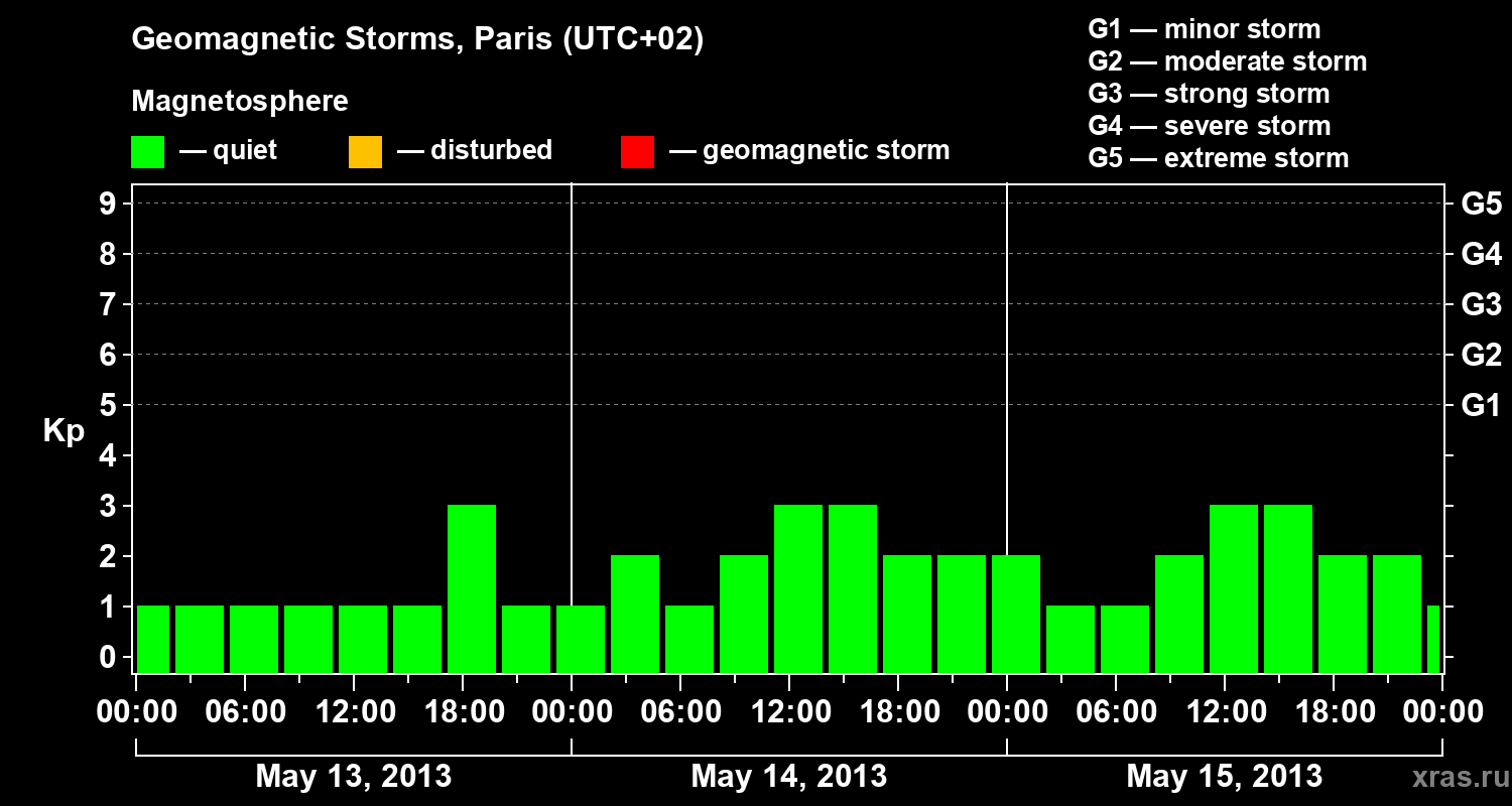 Geomagnetic storms in Paris on May 15, 2013