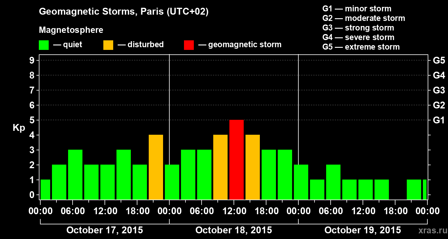 Geomagnetic storms in Paris in October 2015
