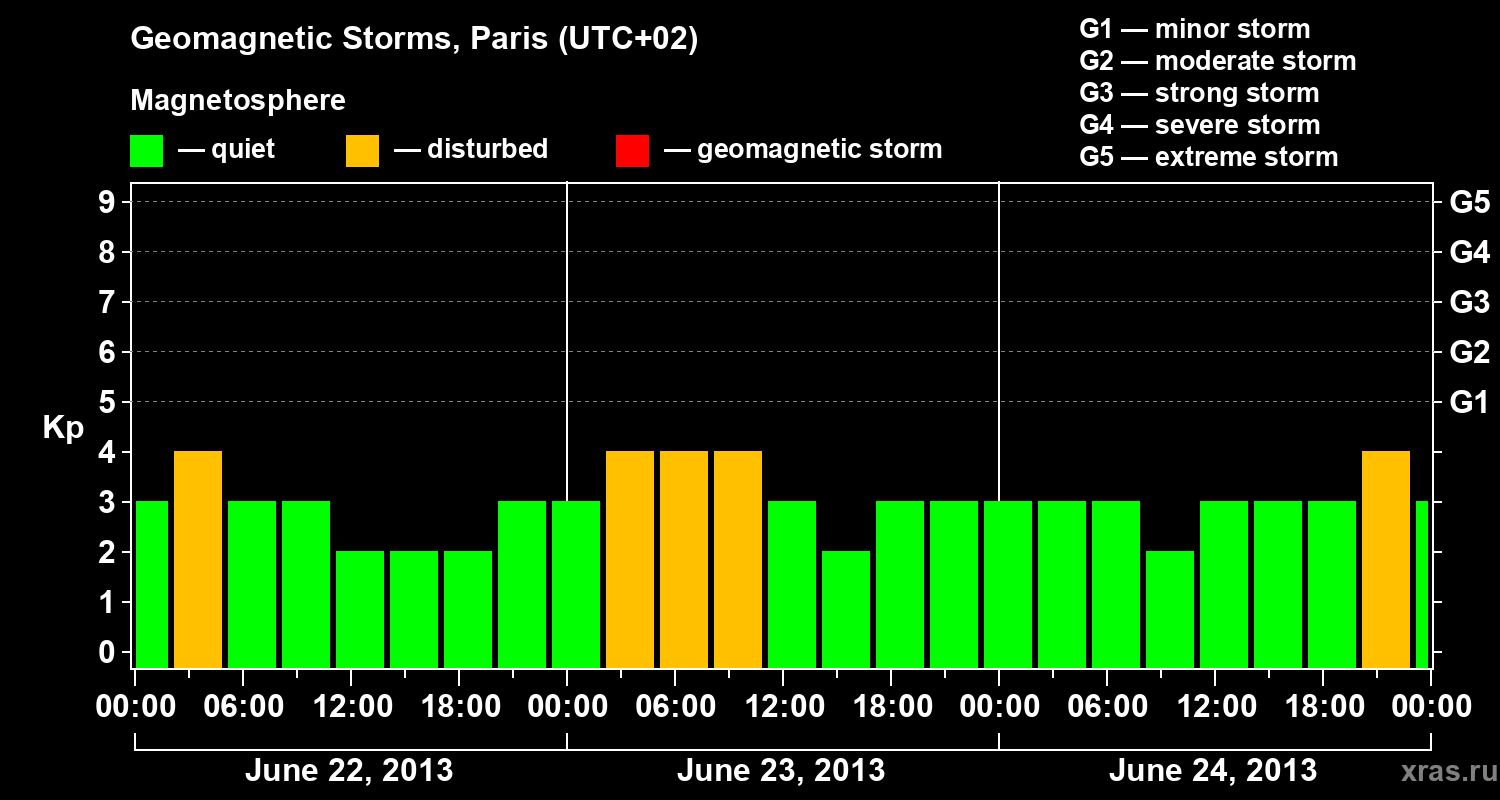 Geomagnetic storms in Paris on Jun 24, 2013