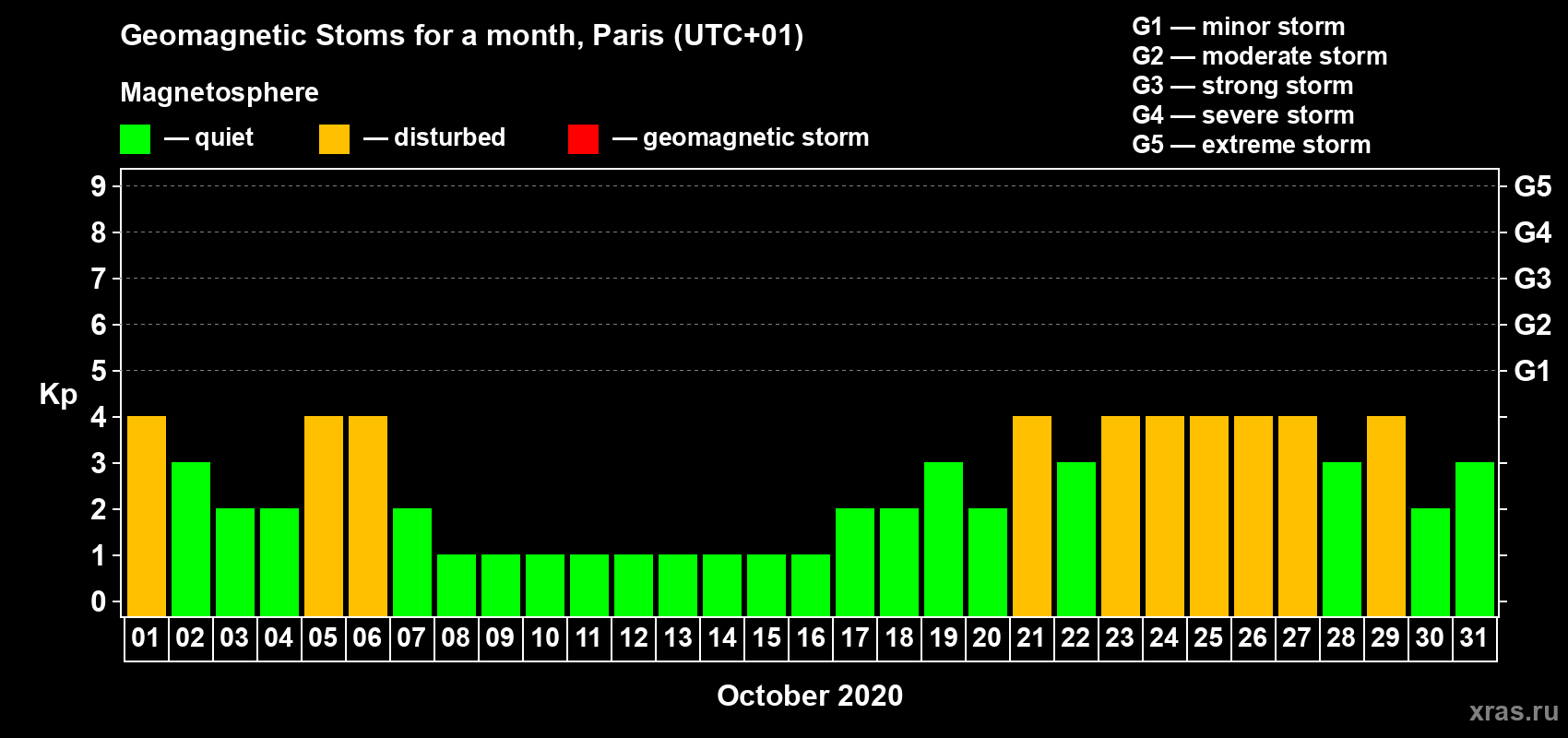 There were no days with an increased level of geomagnetic disturbance in October 2020