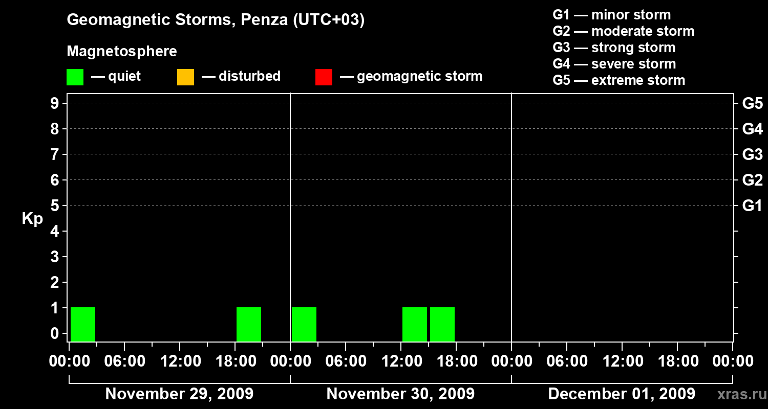 Changes in the geomagnetic index Kp from November 29 to December 1, 2009 for mid latitudes