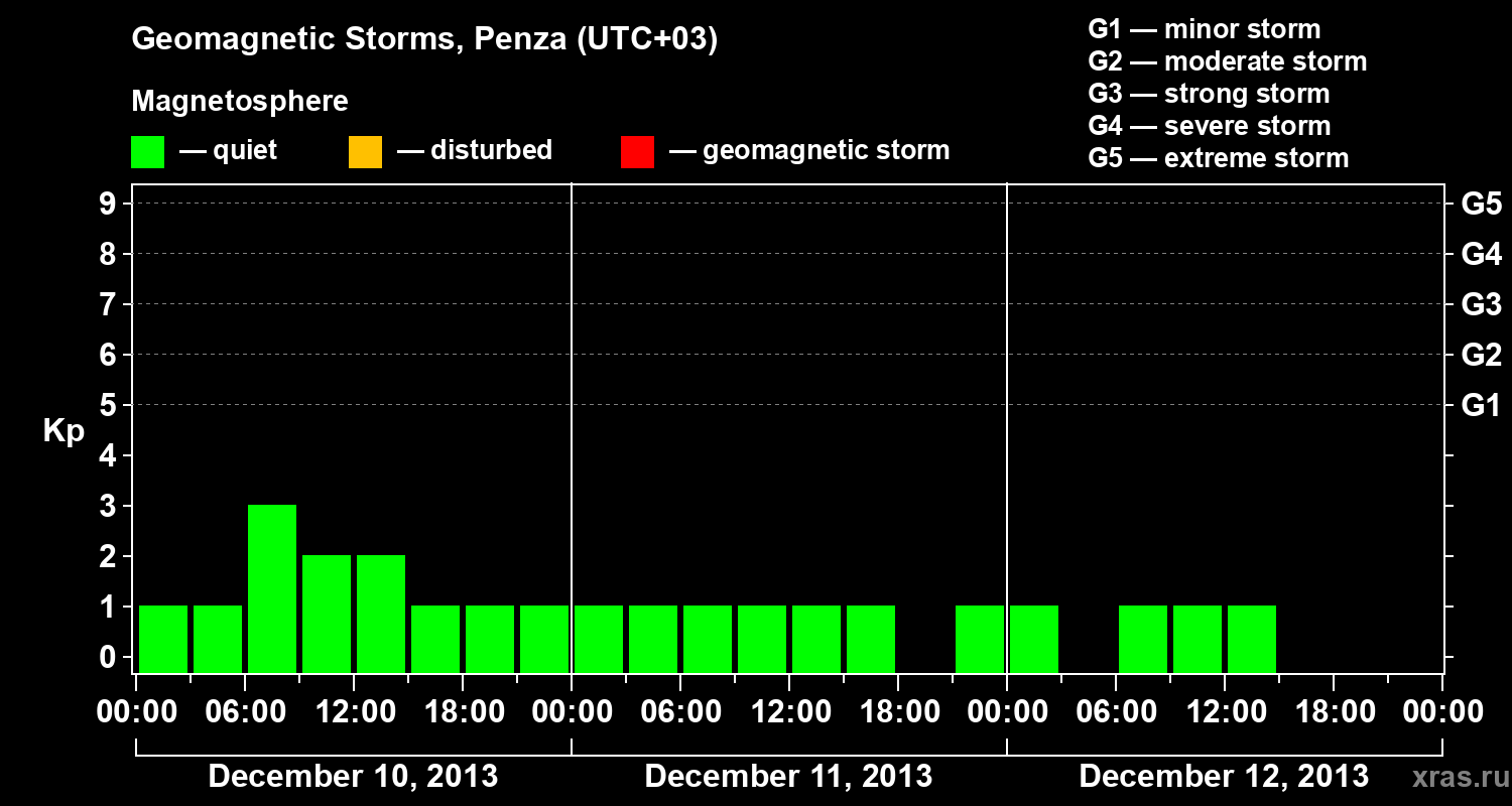 Changes in the geomagnetic index Kp from December 10 to 12, 2013 for mid latitudes