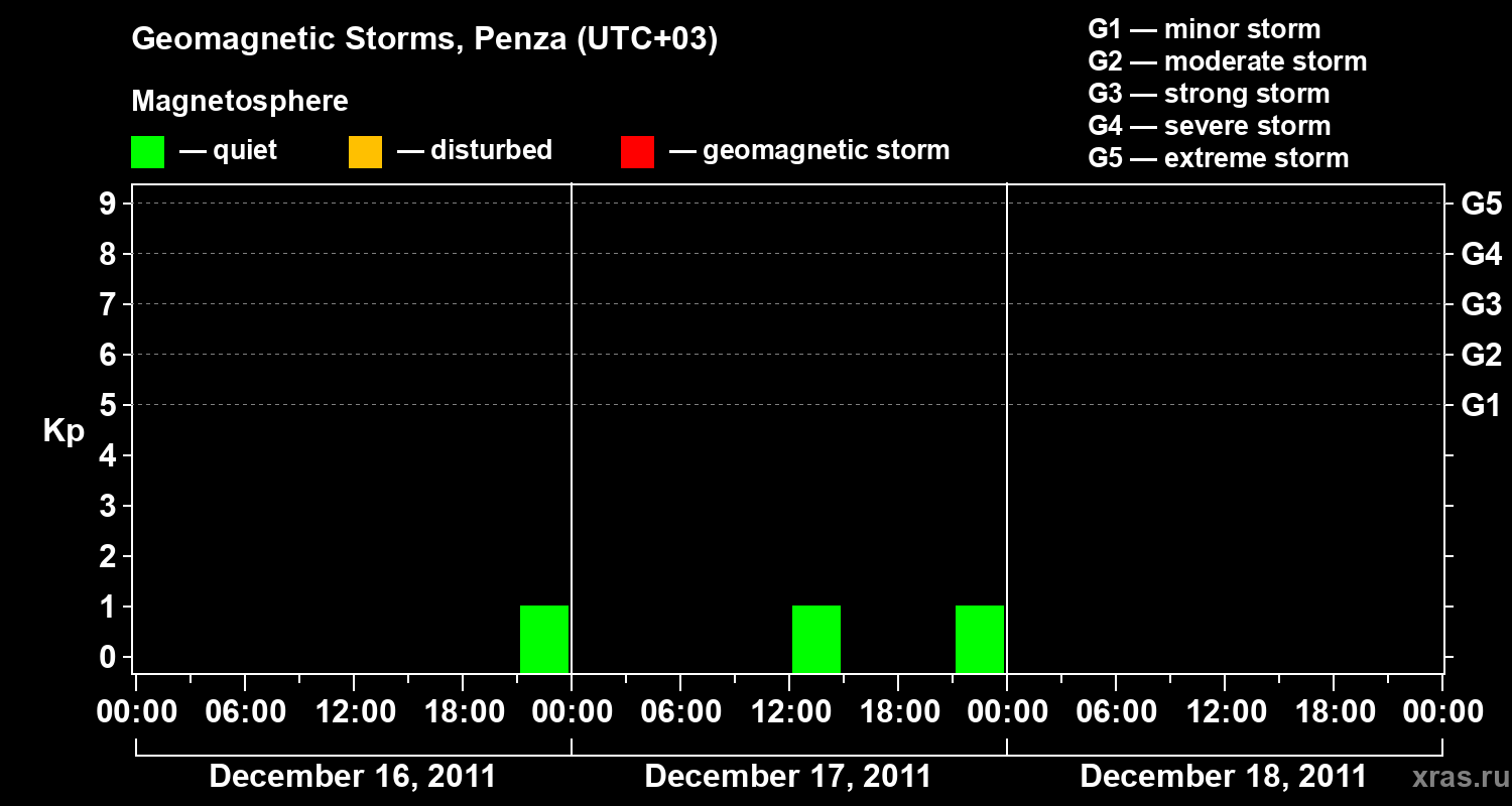 Changes in the geomagnetic index Kp from December 16 to 18, 2011 for mid latitudes