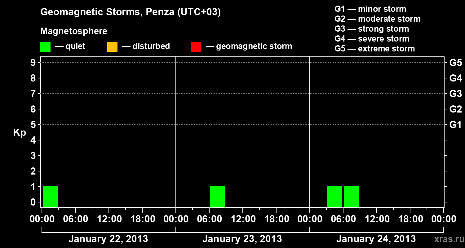 Changes in the geomagnetic index Kp from January 22 to 24, 2013 for mid latitudes
