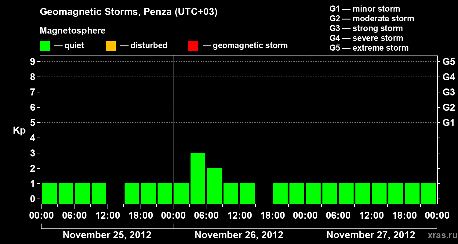 Changes in the geomagnetic index Kp from November 25 to 27, 2012 for mid latitudes