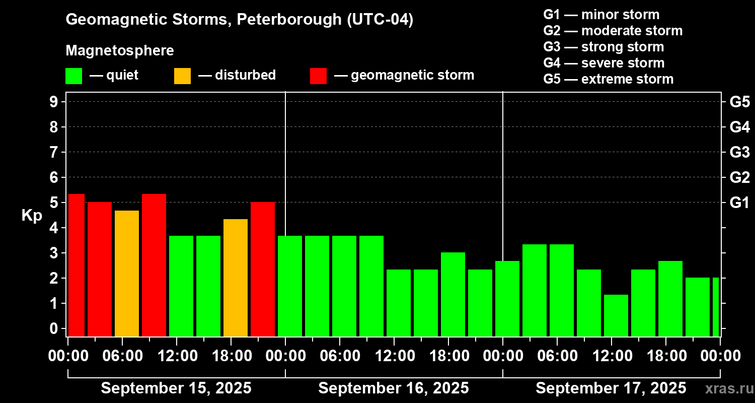 Geomagnetic storms in Peterborough — Sep 17, 2025
