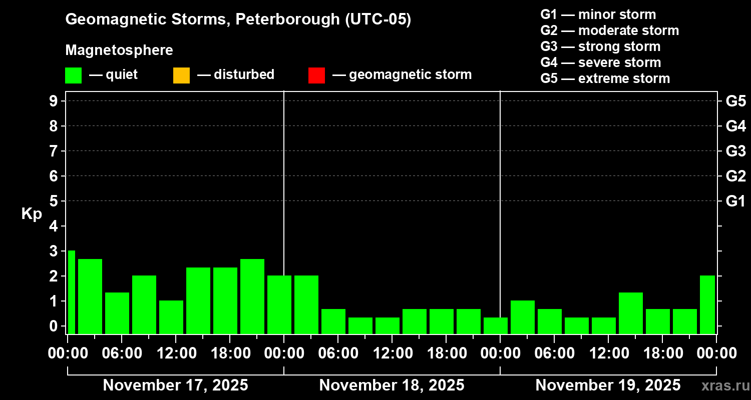 Geomagnetic storms in Peterborough — Nov 19, 2025