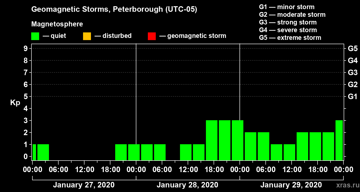 Geomagnetic storms in Peterborough — Jan 29, 2020
