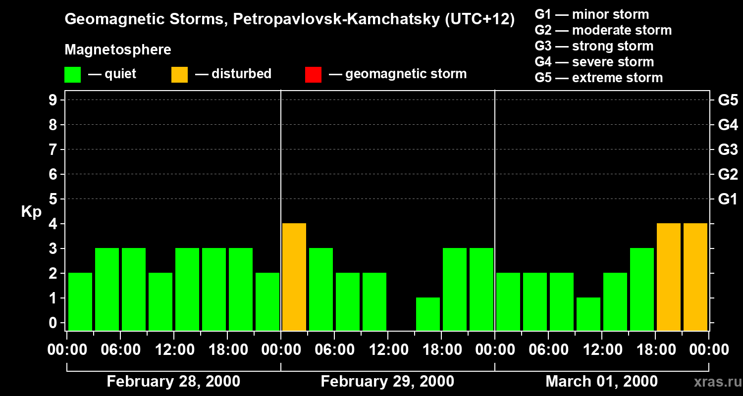Geomagnetic storms in Petropavlovsk-Kamchatsky on Mar 01, 2000