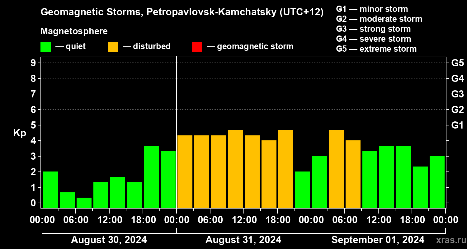 Geomagnetic storms in Petropavlovsk-Kamchatsky on Sep 01, 2024