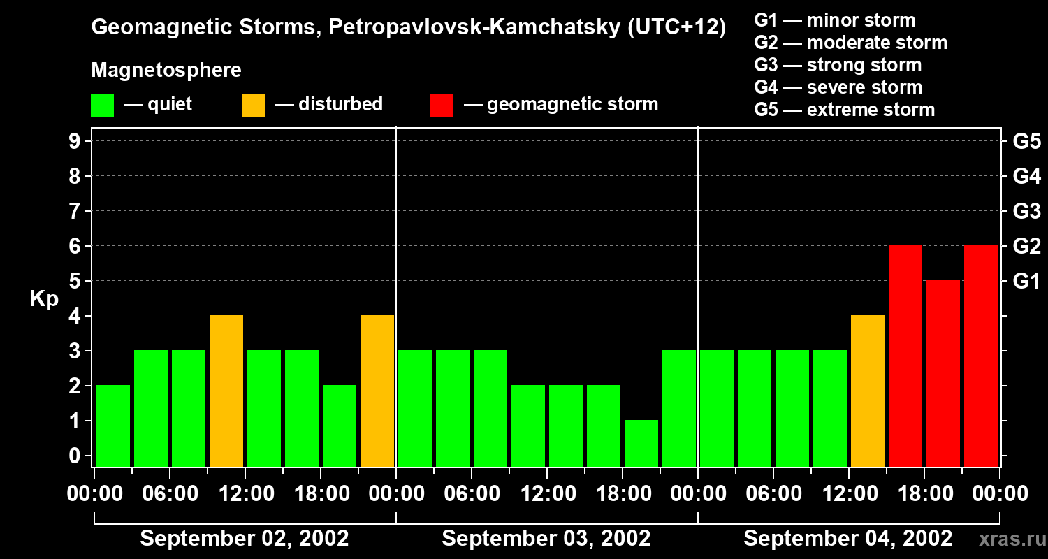 Geomagnetic storms in Petropavlovsk-Kamchatsky — Sep 04, 2002