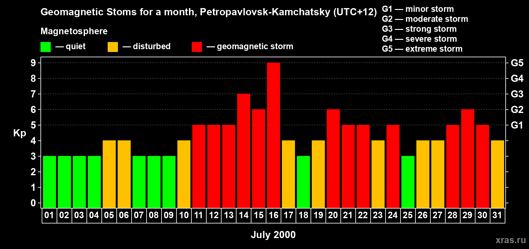 Geomagnetic storms in Petropavlovsk-Kamchatsky in July 2000