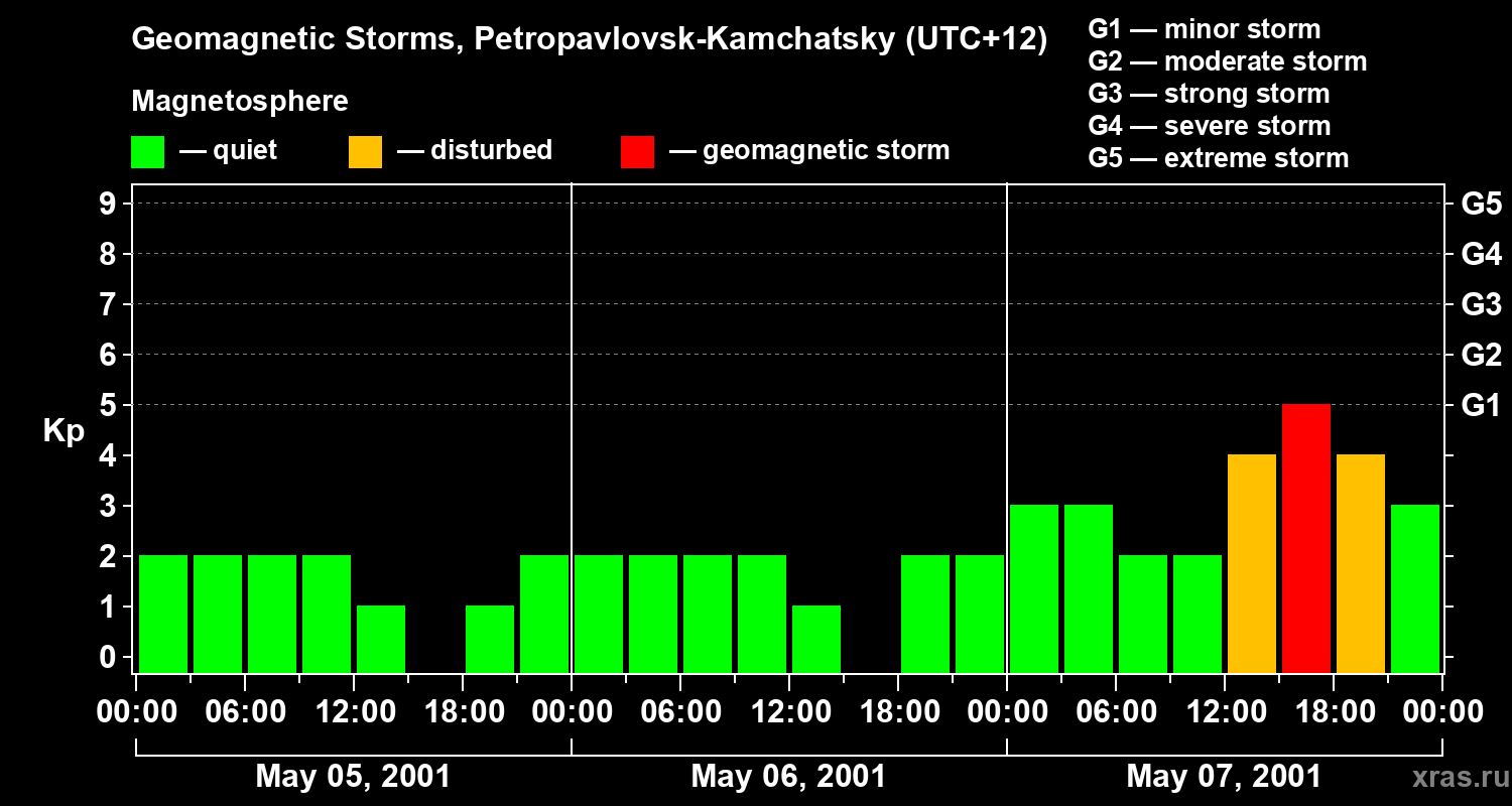 Geomagnetic storms in Petropavlovsk-Kamchatsky on May 07, 2001