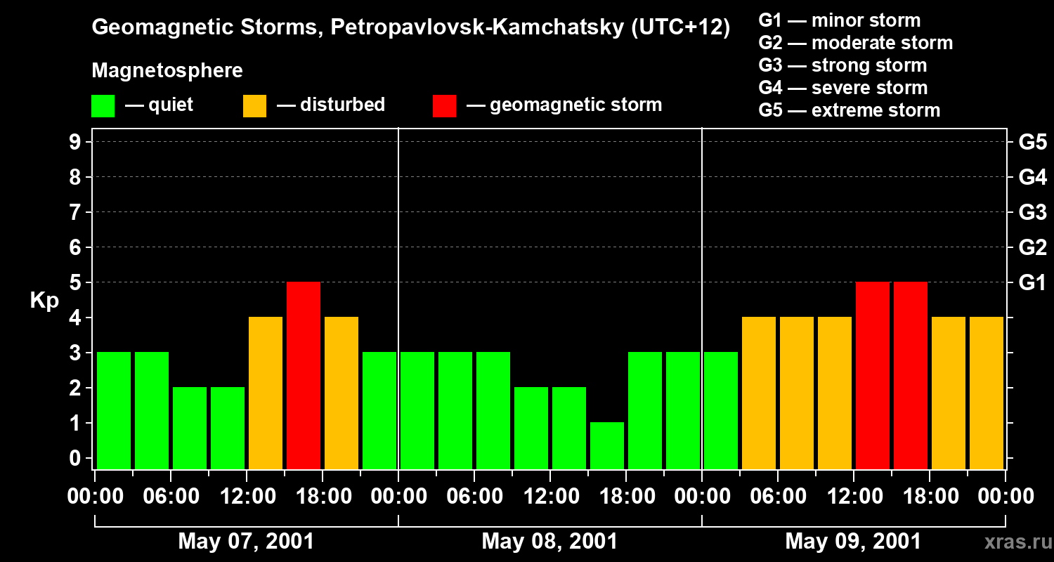 Geomagnetic storms in Petropavlovsk-Kamchatsky on May 09, 2001