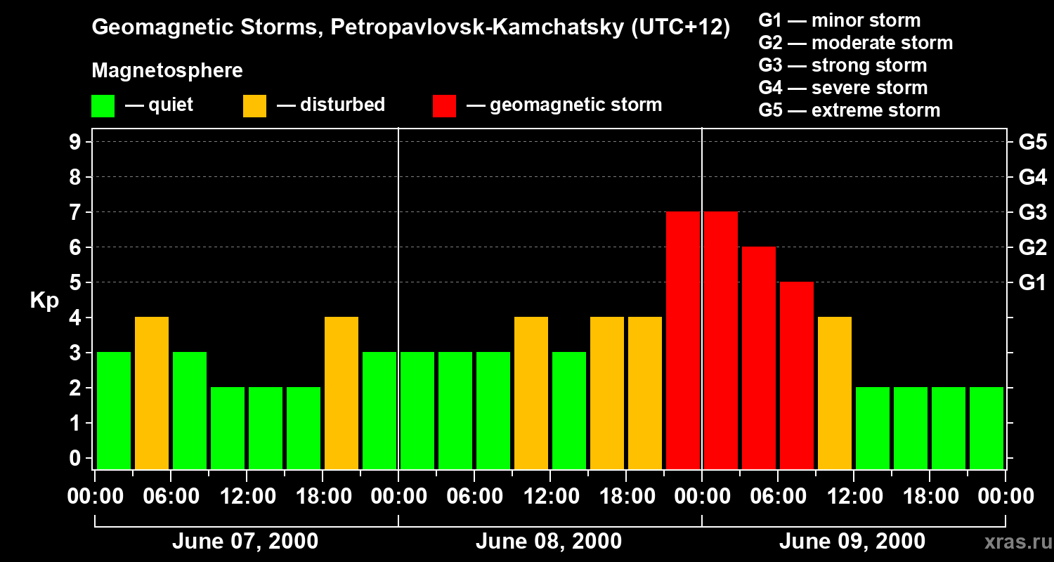 Geomagnetic storms in Petropavlovsk-Kamchatsky — Jun 09, 2000