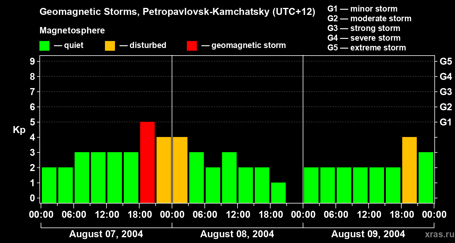 Geomagnetic storms in Petropavlovsk-Kamchatsky — Aug 09, 2004