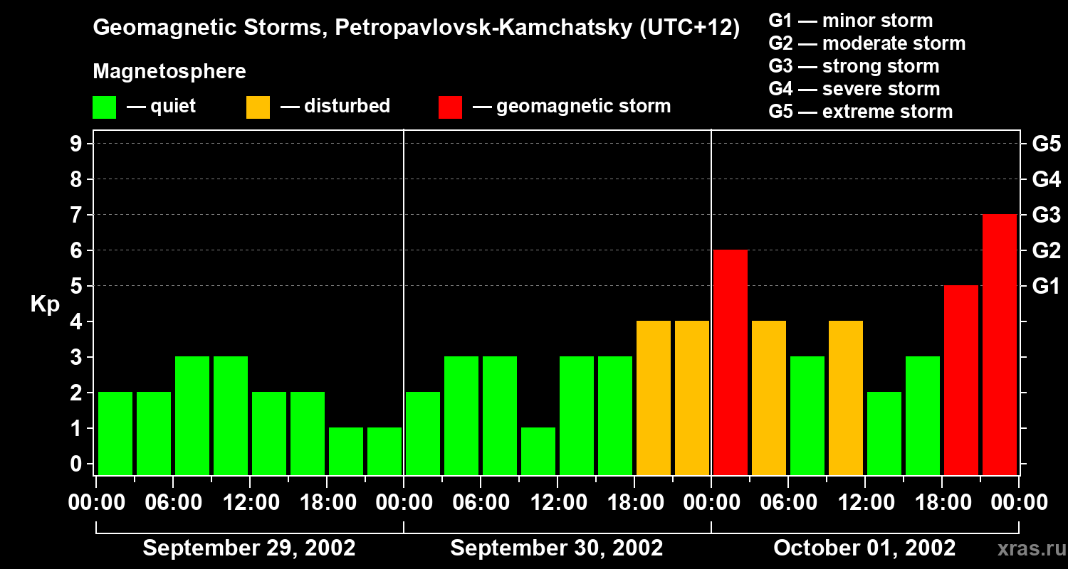 Geomagnetic storms in Petropavlovsk-Kamchatsky — Oct 01, 2002